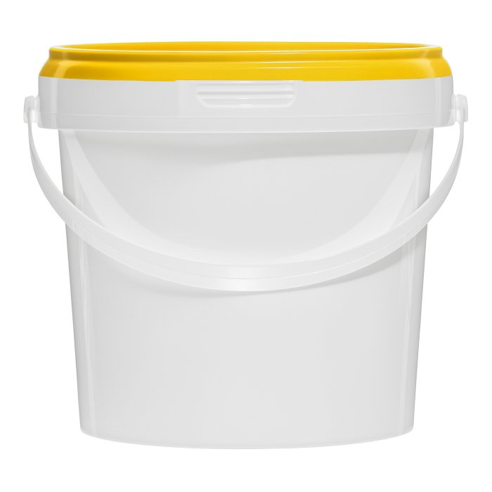 Пластиковое белое ведерко с желтой крышкой, круглое, объемом 0,365 литра. Ручка пластмассовая. По Вашему заказу можно нанести логотип компании или продукта - есть офсетная и IML печать. Оптовая закупка доступна для всей территории России, в Перми доступен самовывоз.
