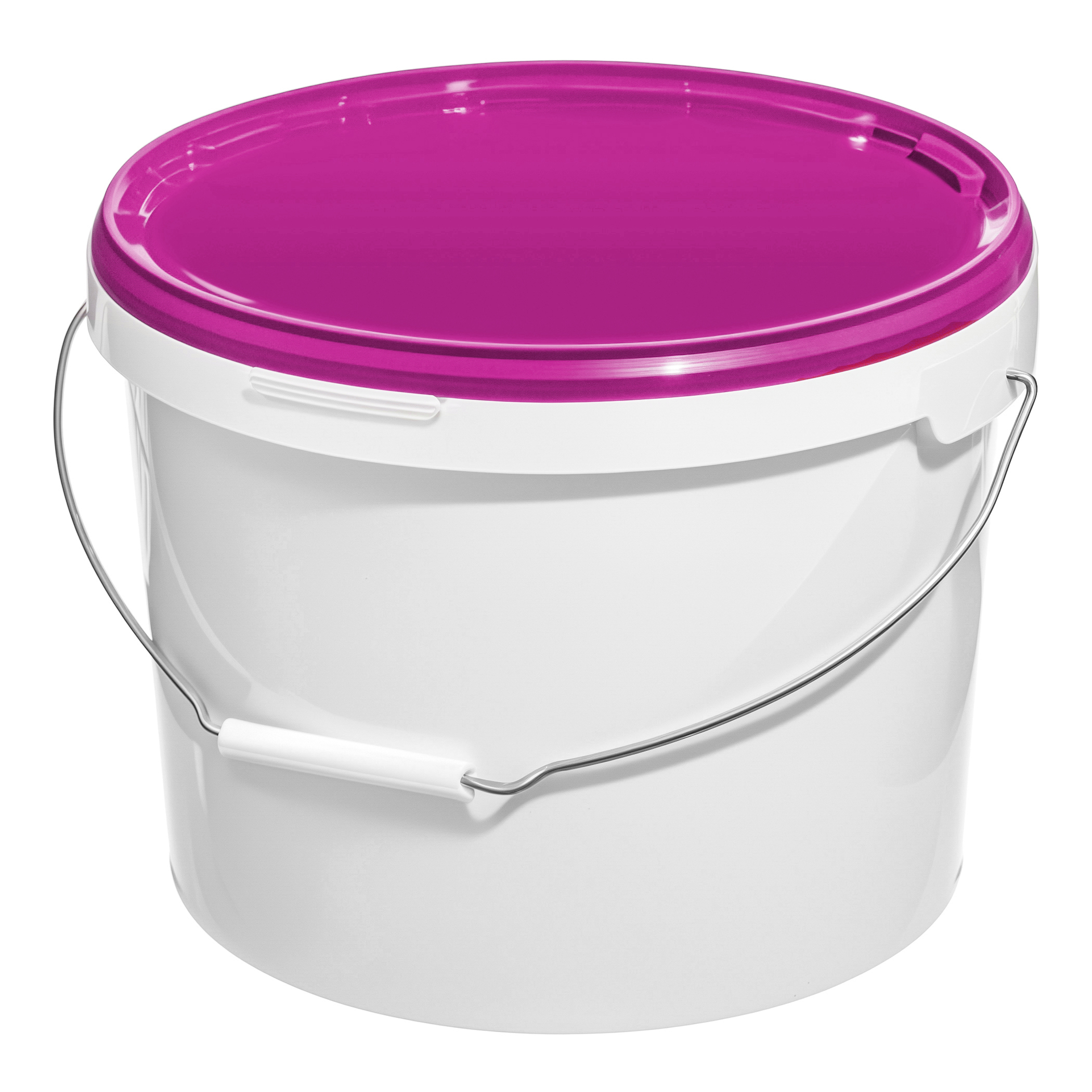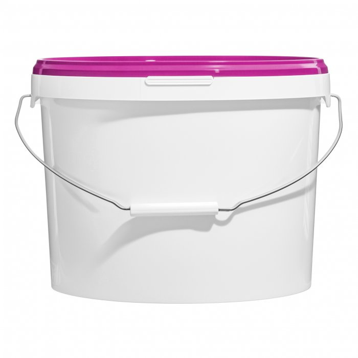 Белое ведро с металлической ручкой и крышкой фиолетового цвета, объем 11,3 литра, изготовленное из высококачественного пластика. Имеет усиленную ручку, которая не деформируется при переноске тяжелых строительных смесей, ЛКМ, бытовой химии. Крышка плотно закрывается, что предотвращает попадание пыли и грязи внутрь ведра, а также препятствует высыханию его содержимого. Ведро универсально - подходит для использования как в домашних условиях (для заготовок, солений, хранения кондитерских изделий, круп), так и в торговле или для отделочных работ (для краски, для сухих смесей и т.п.).