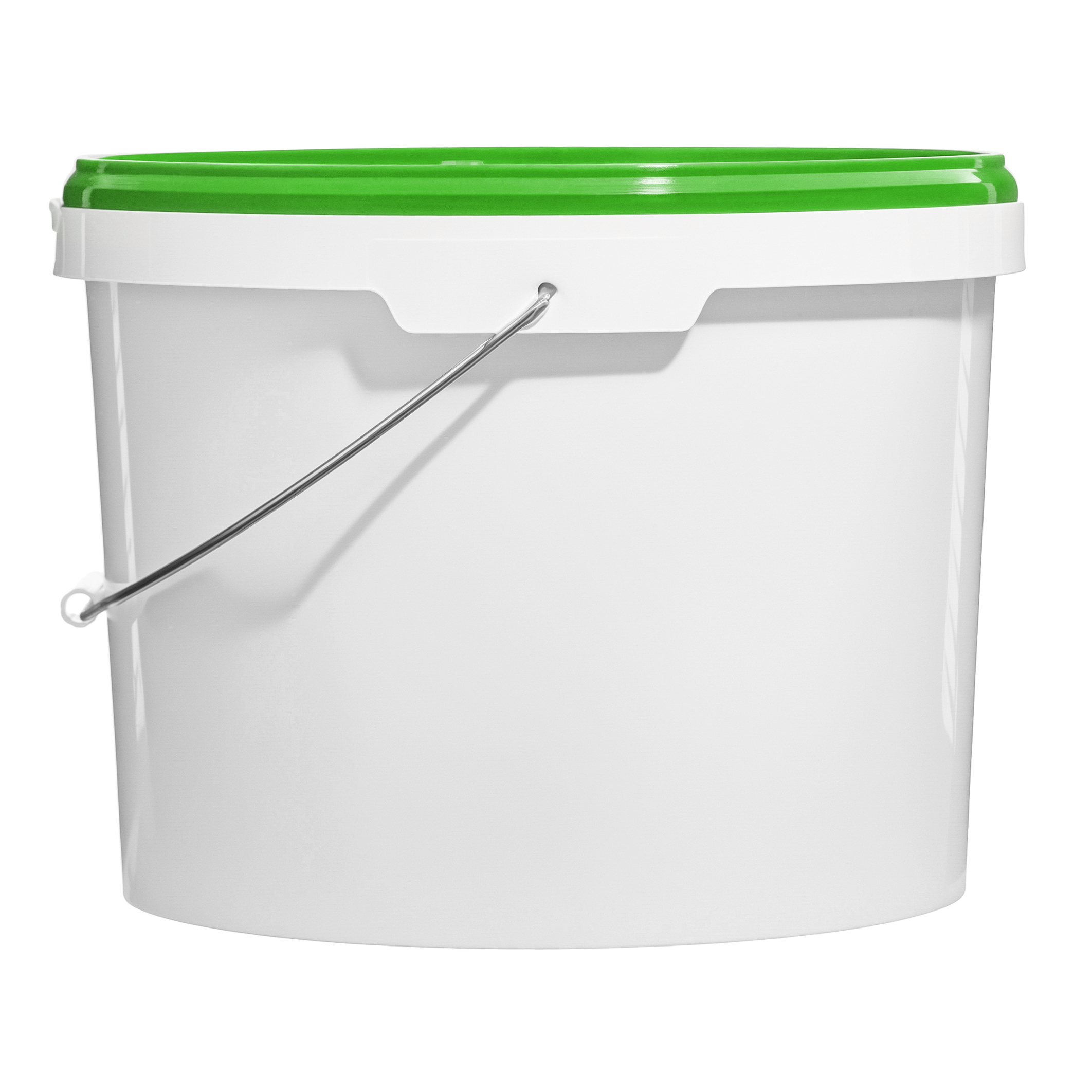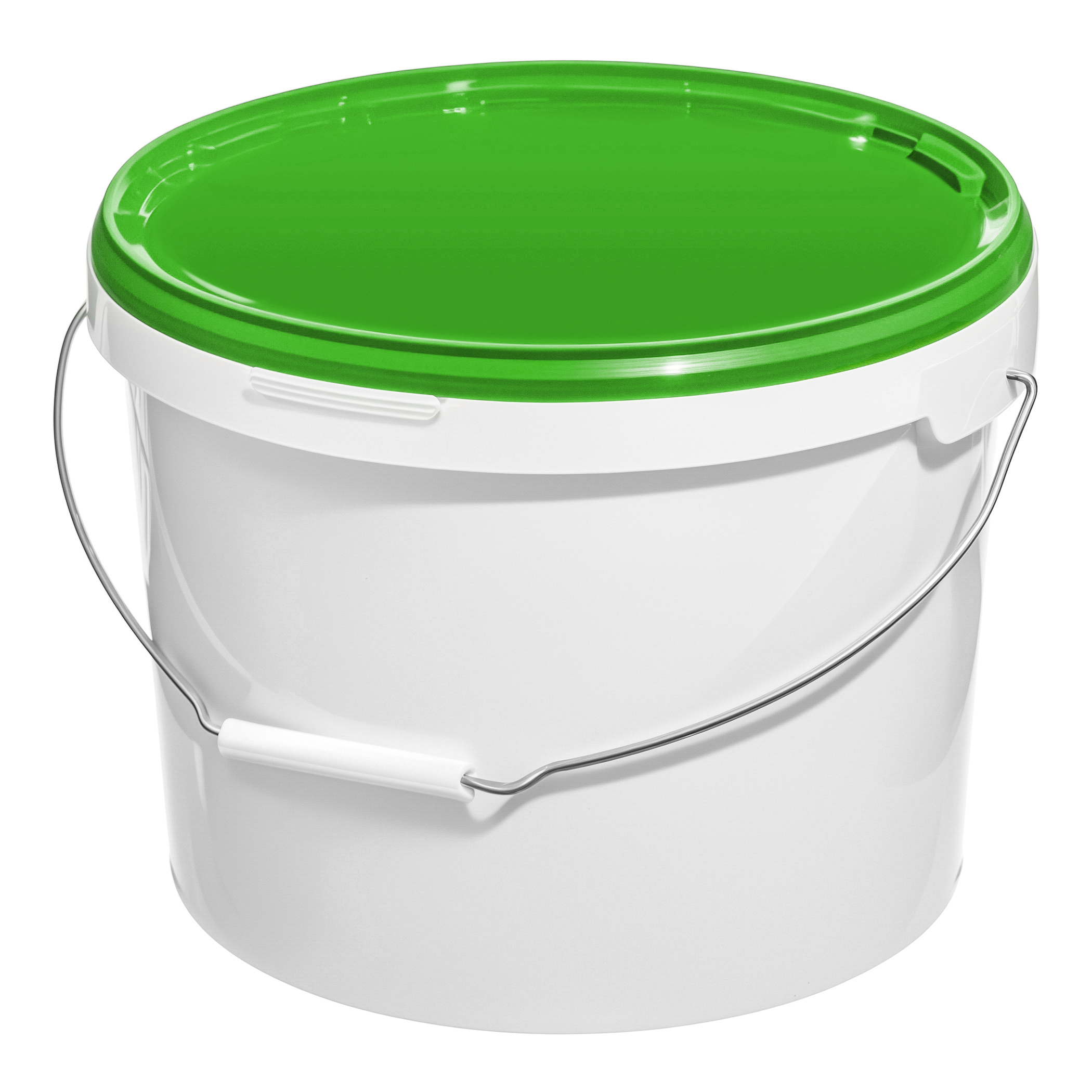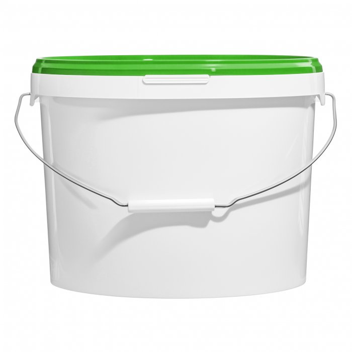 Белое ведро с металлической ручкой и зеленой крышкой, объем 11,3 литра, изготовленное из высококачественного пластика. Имеет удобную надежную ручку, которая обеспечивает комфортную переноску тяжелых строительных смесей, ЛКМ, бытовой химии. Крышка плотно закрывается, что предотвращает попадание пыли и грязи внутрь ведра, а также препятствует высыханию его содержимого. Ведро универсально - подходит для использования как в домашних условиях (для заготовок, засолок), так и в торговле или на производстве (для краски, для сухих смесей).