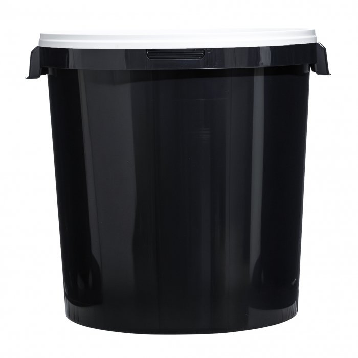 Техническое пластиковое ведро объемом 32,8 литра без ручки, с герметичной крышкой белого цвета.