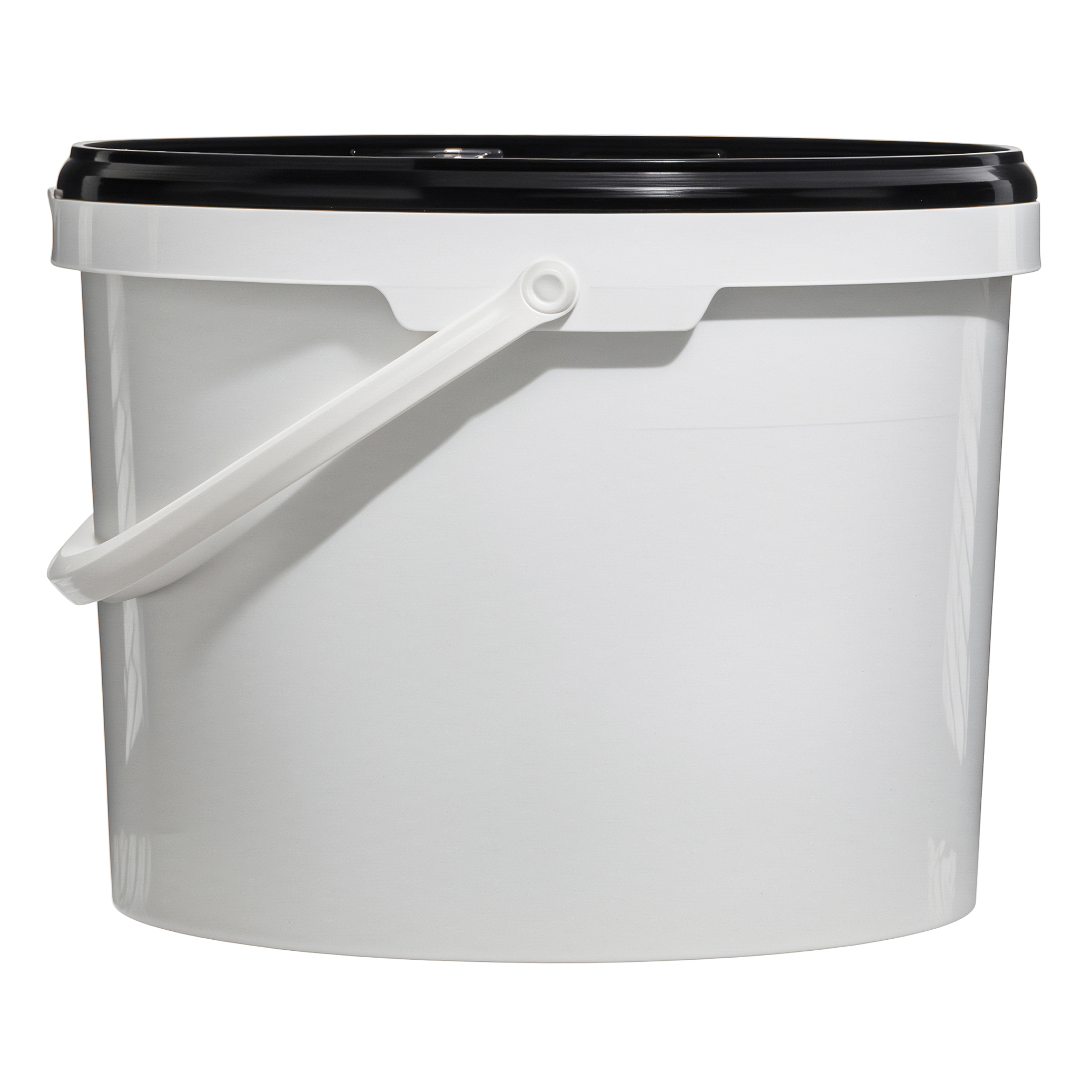 Белое пластиковое ведро на 11,3 литра с черной крышкой и надежной ручкой для переноски. Подходит для хранения пищевых продуктов. Возможно нанесение логотипа, этикетки и т.п. По вопросам оптовых поставок обращайтесь по телефону, указанному в разделе "Контакты". Есть самовывоз в Перми, а также доставка по России.
