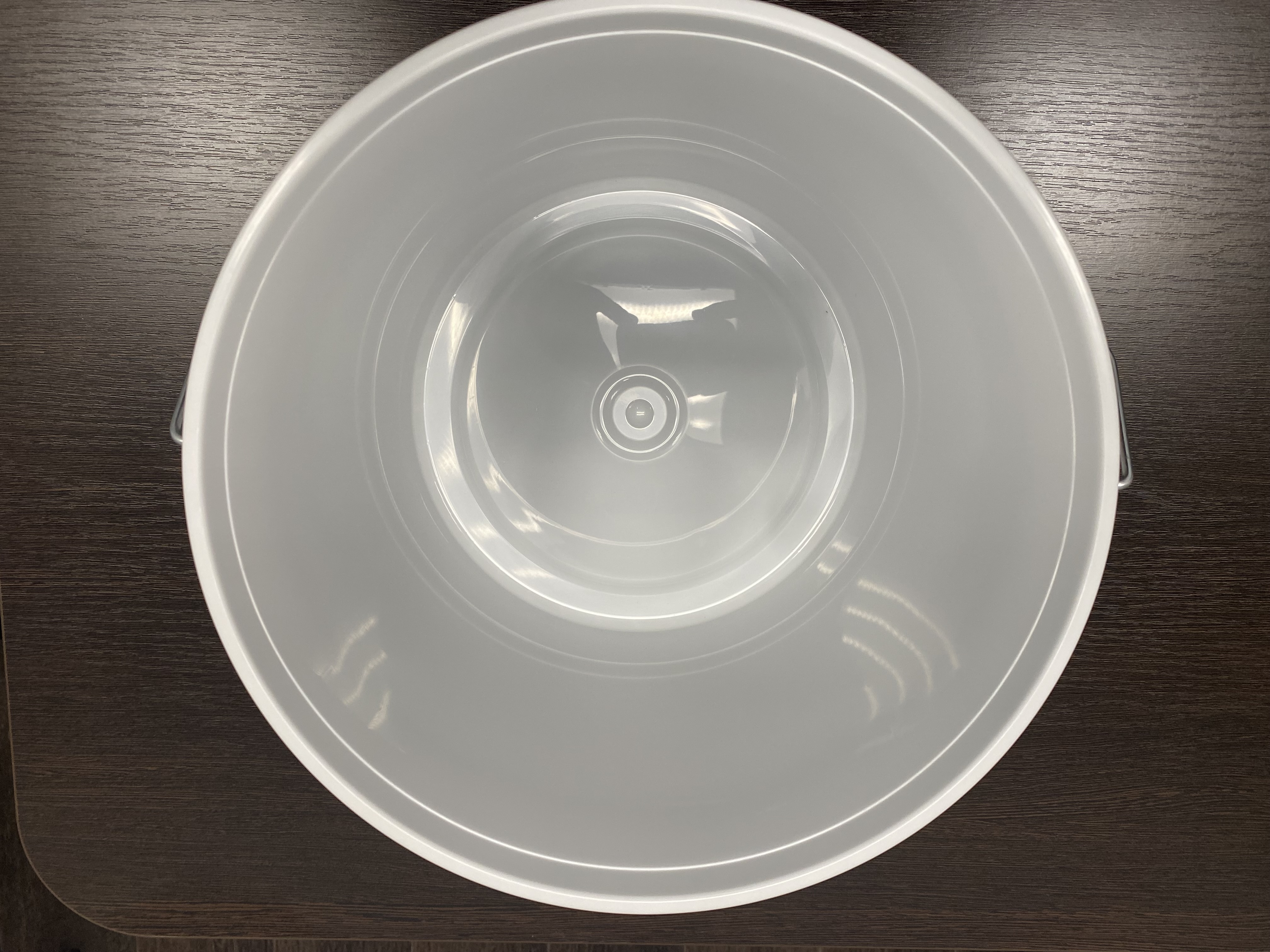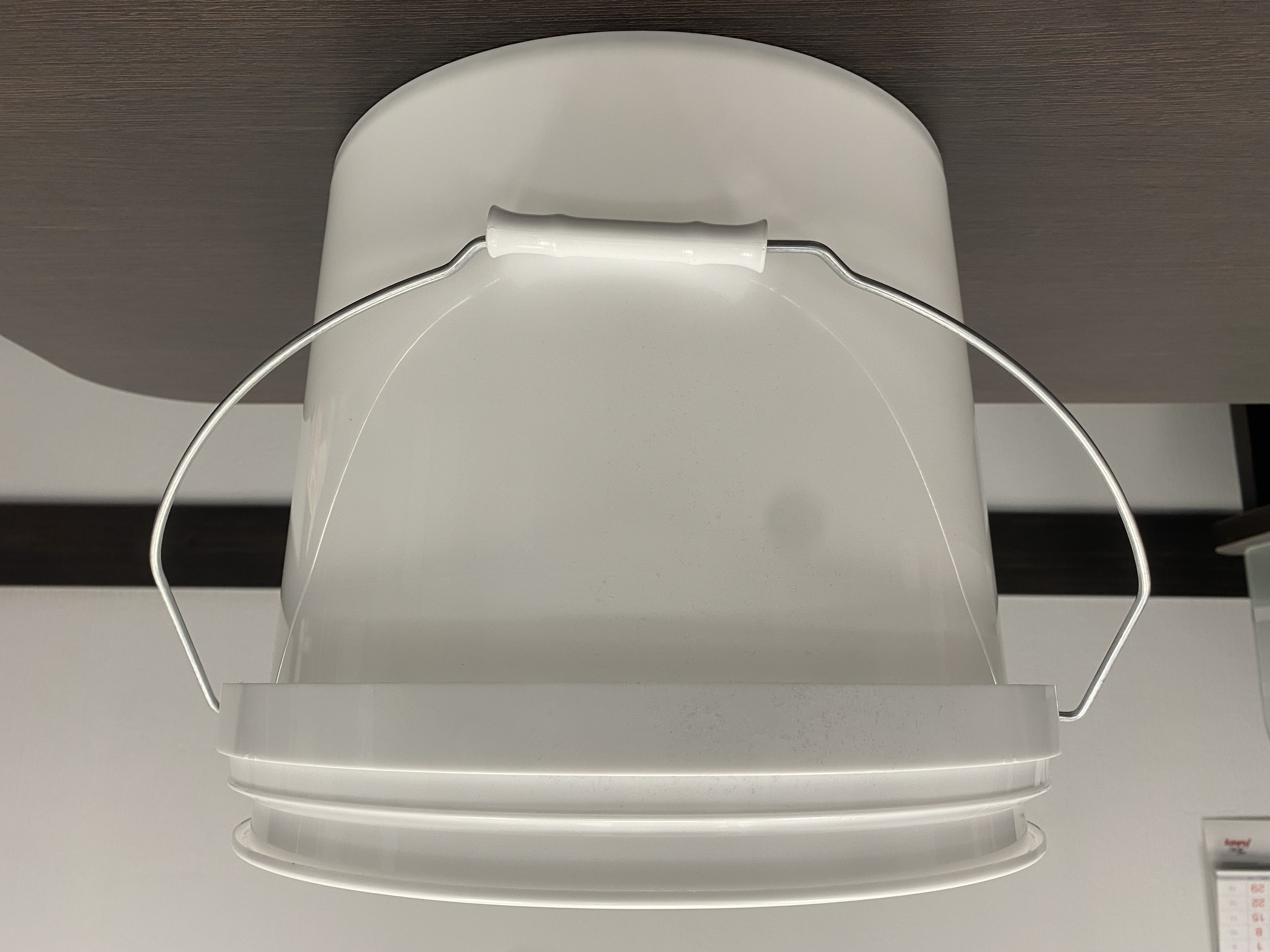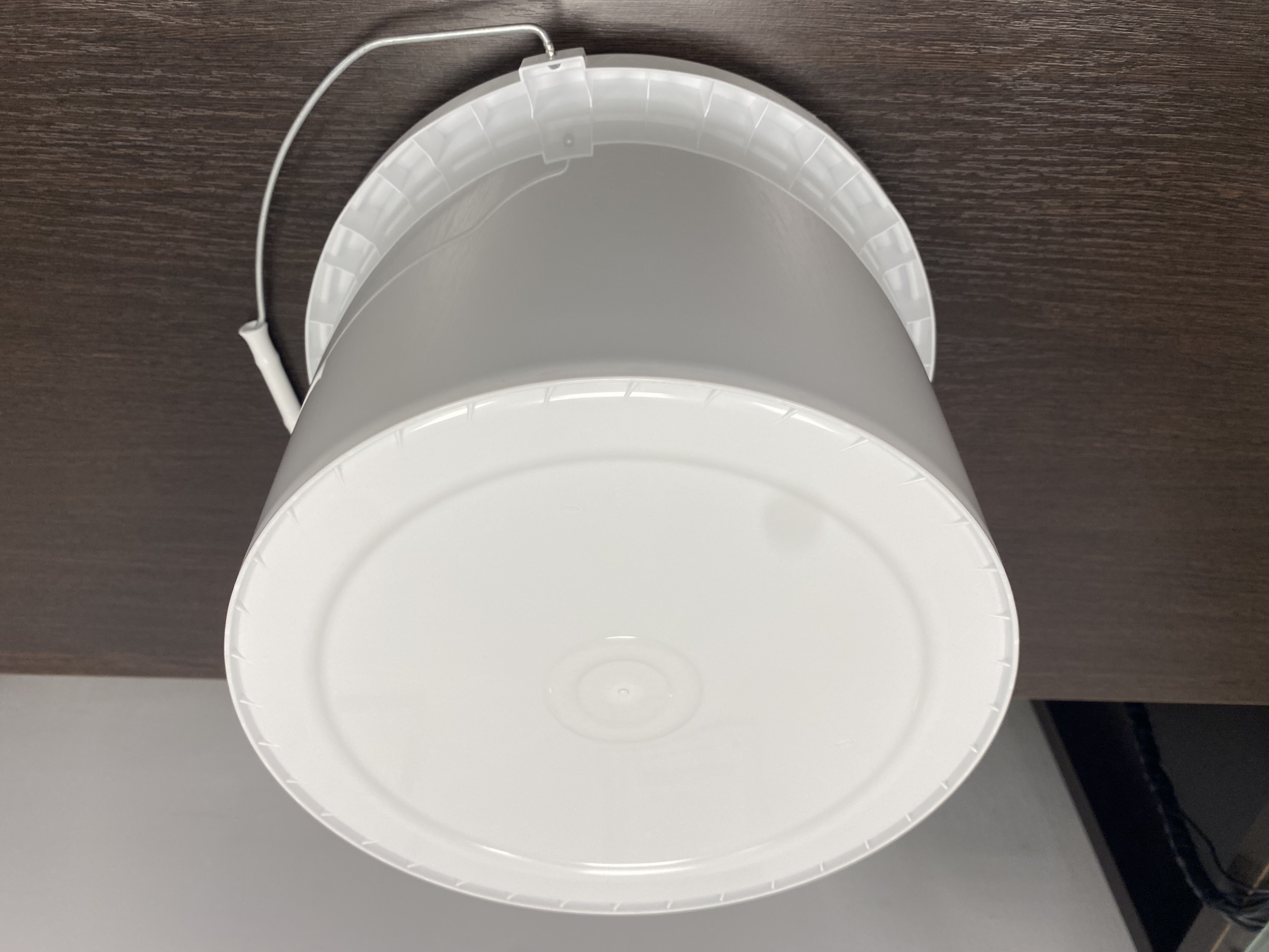 Пластиковое ведро JHPS 1350 белого цвета объемом 14,2 литра (или 3,5 галлона) с металлической ручкой (есть ролик) и пластмассовой крышкой LHPS 3100. Пластик - первичный, пищевой, без добавления материалов вторичной переработки.
