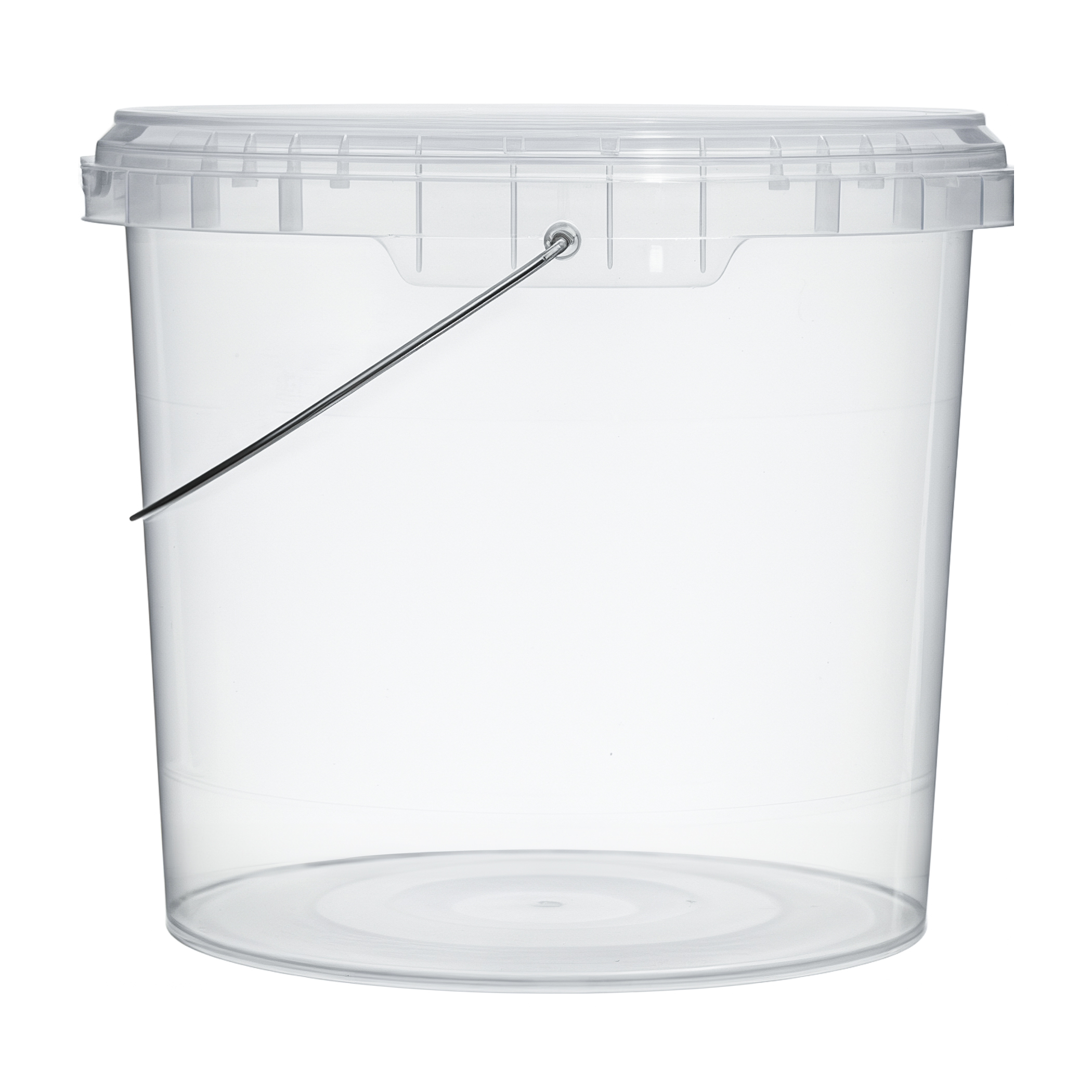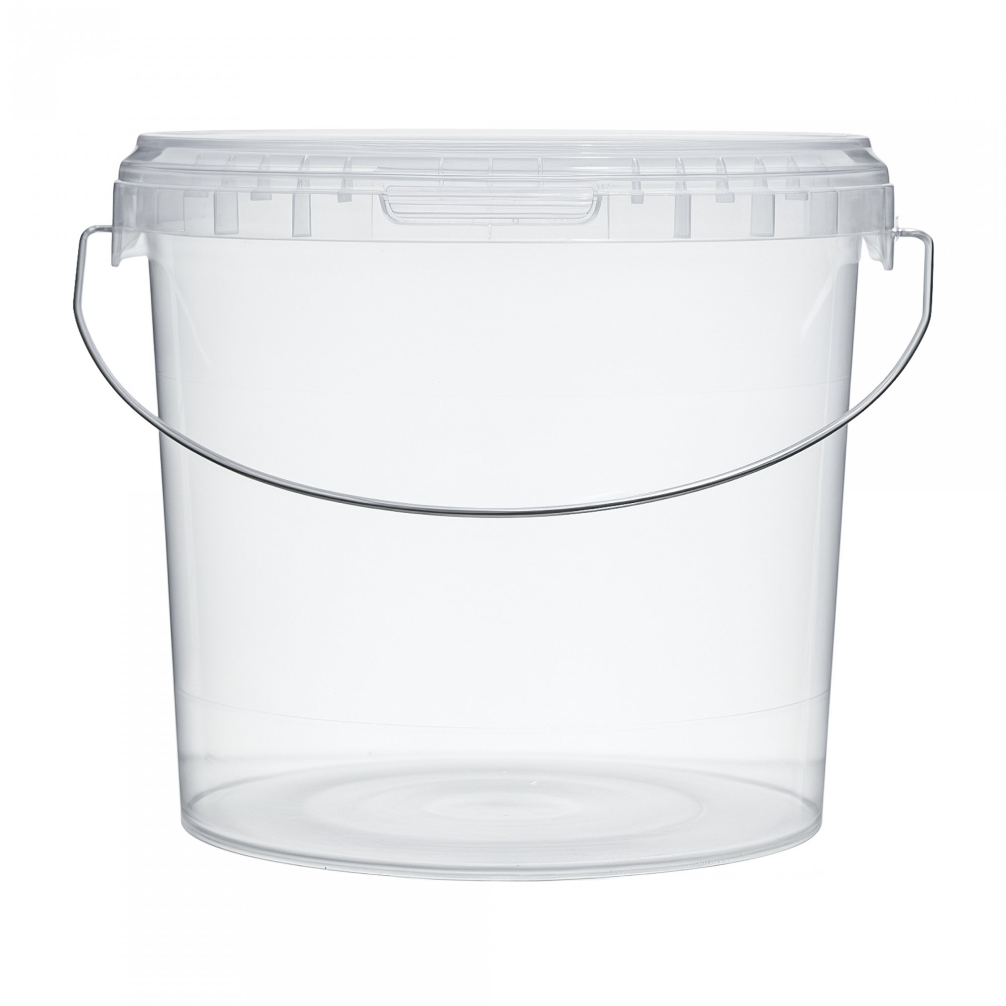 Прозрачное пластиковое ведро емкостью 3,9 литра с металлической ручкой и герметичной крышкой применимо для хранения как сухих, так и жидких продуктов, также подходит для использования в как в бытовых, так и в коммерческих целях.